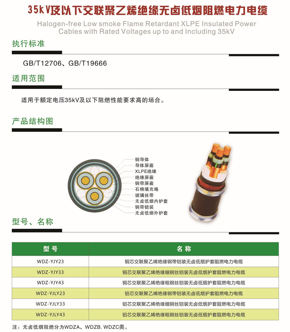 聚乙烯绝缘无卤低烟阻燃电缆